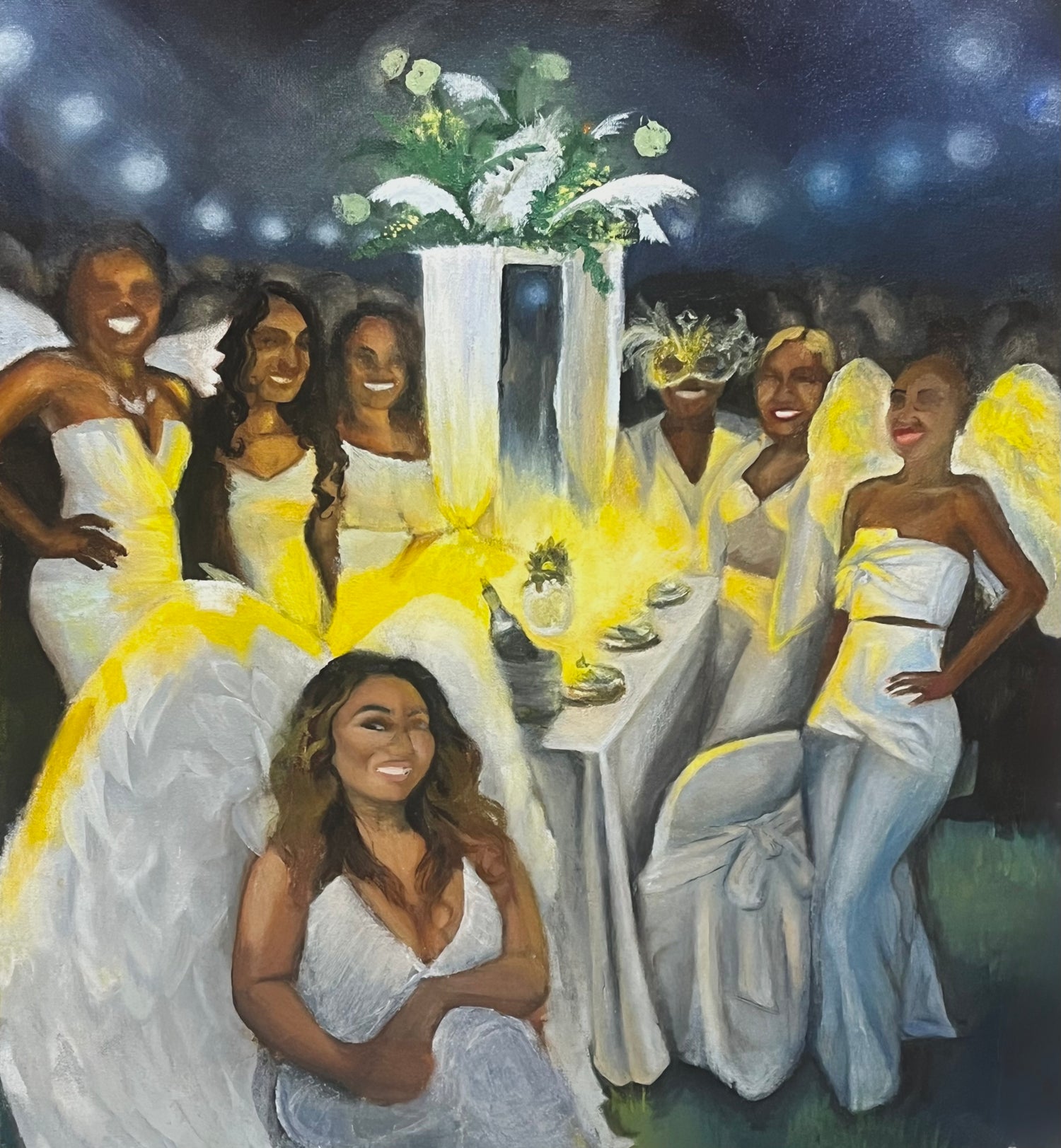 A live painting done to honor the only women of color at the “Noche Blanco” dinner party competition. Aline with the lawyer in charge we received the honor of First Place Table as I live painted the scene.